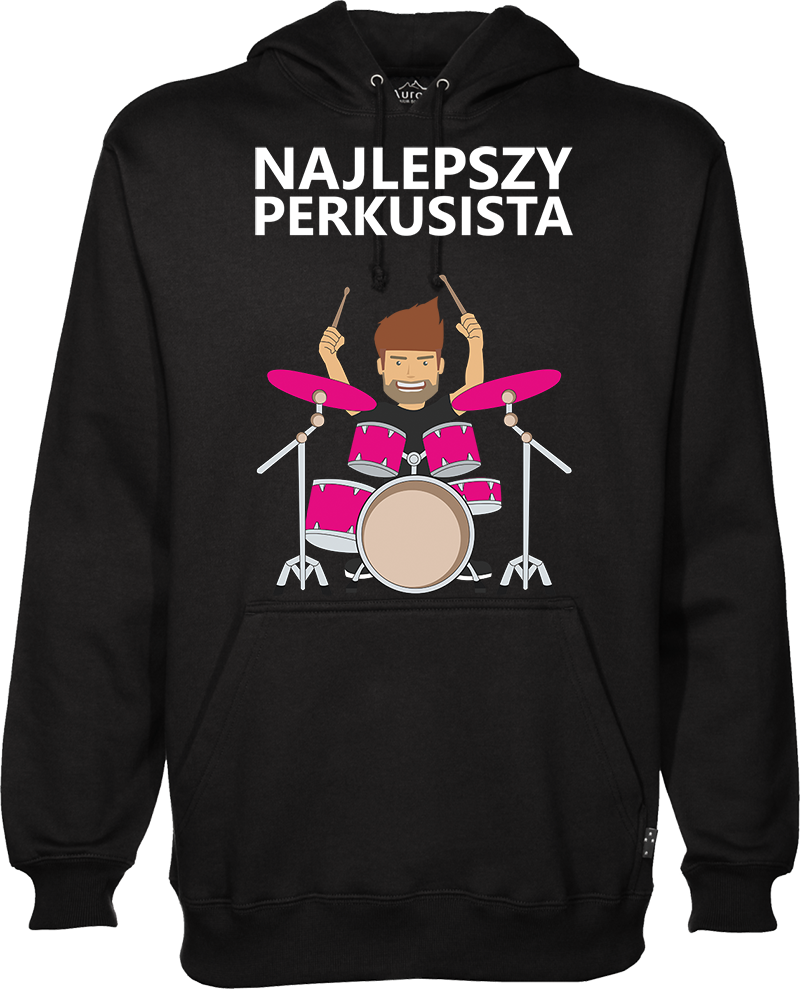 Bluza z nadrukiem Najlepszy perkusista – Indywidualna bluza z motywem muzycznym perkusji i muzyka. Bluza w kolorze czarnym, wykonana z grubego i miękkiego materiału, który jest przyjemny w dotyku. Skład: 80% bawełna ring-spun + 20% poliester. Nadruk w technologi cyfrowej DTG zapewnia mocne i żywe kolory. Posiada kaptur ściągany sznurkami i mega wygodną dużą kieszeń, ala kangur. Ściągacze na rękawach i na dole. Gramatura 280g/m2