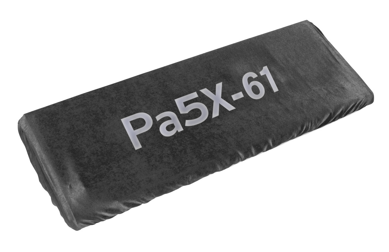 Wykonany z wysokiej jakości delikatnie błyszczącego materiału w kolorze grafitowym/szarym. Materiał ten to gęsto pleciona syntetyczna tkanina premium. Z drugiej strony zaletą tej tkaniny jest to, że przez cały okres eksploatacji wygląda elegancko i schludnie. Kolejnym atutem jest dodatkowa ochrona instrumentu na czas transportu w case, a także ochrona przed wilgocią. Pokrowiec do KORG Pa5X-61 wersja 61 klawiszy nie jest WODOODPORNY, ale dzięki gęstemu splotowi włókien, długi czas opiera się wodzie i nie chłonie jej jak gąbka.